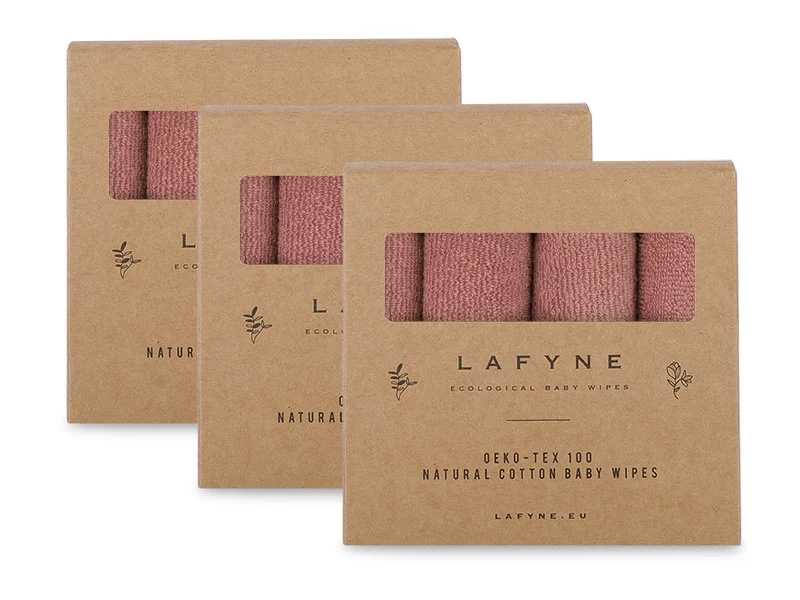 3 x 4-er Pack Babywaschlappen aus feinem Frottee, praktisch für zuhause und unterwegs. Farbe Berry. Leicht verstaubar, säubern auf natürliche Weise beim Essen, Wickeln oder Stillen.