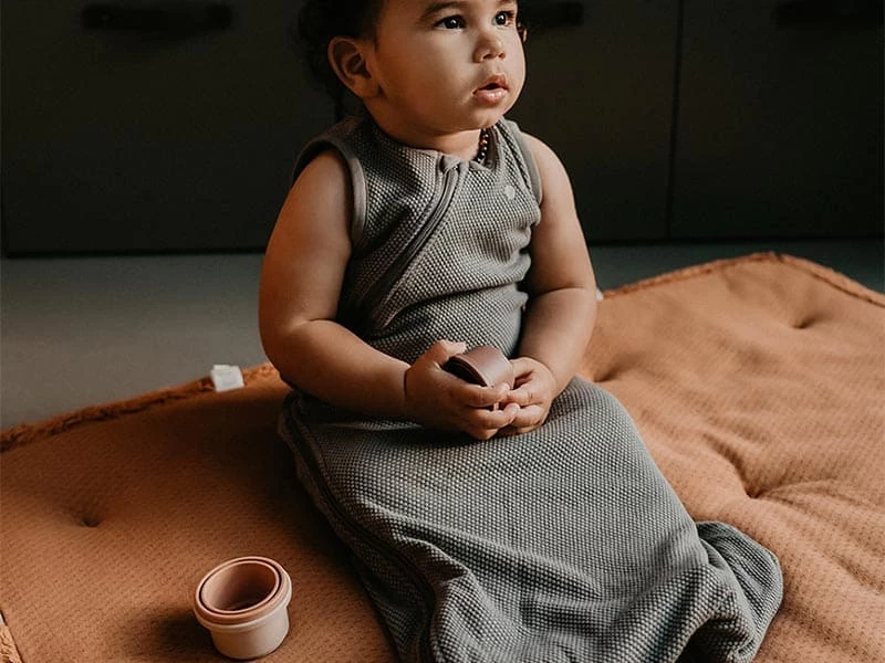 Für den ungestörten Babyschlaf bedarf es natürlich eines weichen und praktischen Babyschlafsacks. Wir bieten ärmellose Babyschlafsäcke für Babys von 3-9 Monaten aus 100% Biobaumwolle für das komplette Wohlbefinden deines Babys an. Diese sind auch für das Wickeln sehr praktisch, sie müssen dank des seitlichen Reißverschlusses nicht ausgezogen werden.