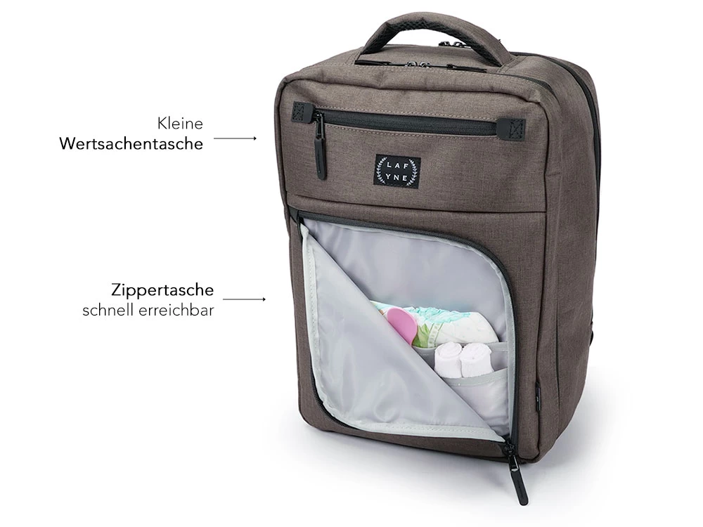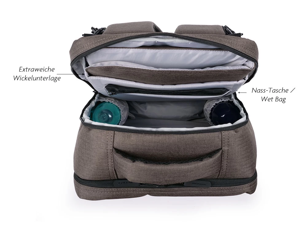 - PRAKTISCHES DESIGN – Der vordere Teil des Rucksacks lässt sich komplett aufklappen und offenbart somit alle Wickelutensilien.