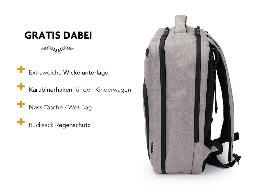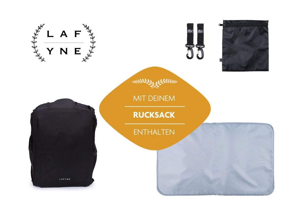 Mit dem Lafyne Wickelrucksack bekommst du ein komplettes Set für nur 64,95 €.