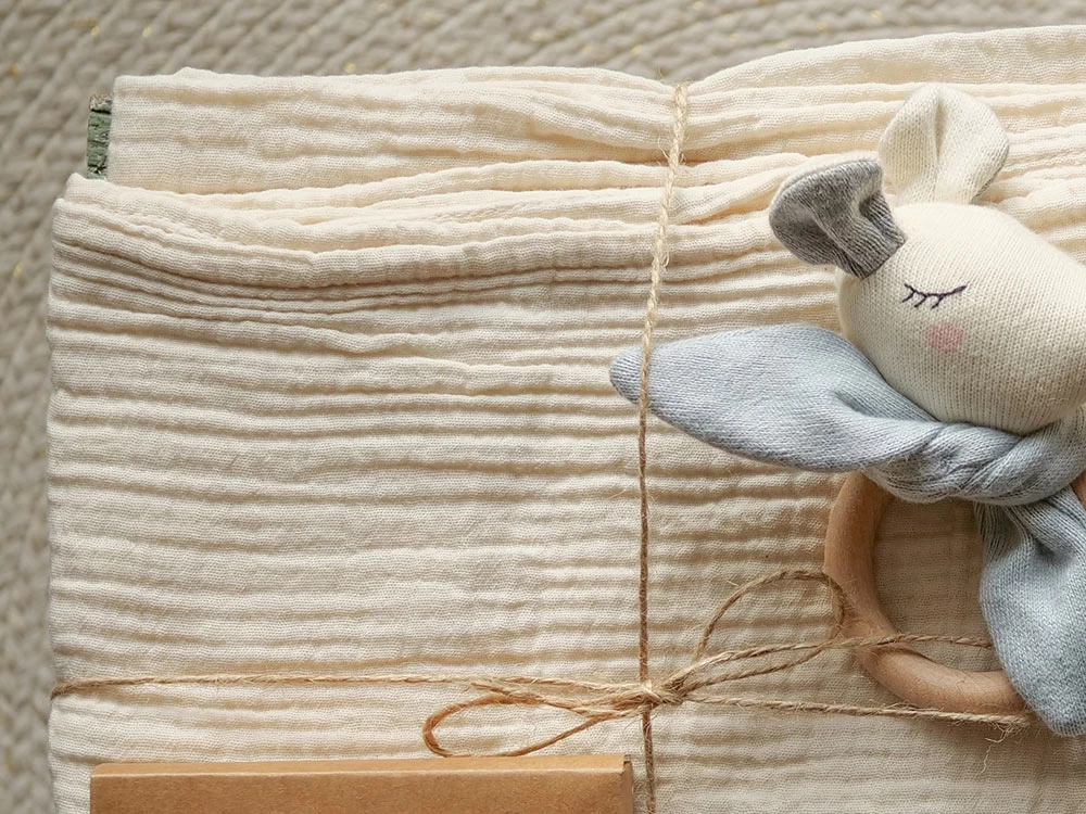 Diese drei hochwertigen und wunderschönen Produkte haben wir für dich zusammengestellt: ein zuckersüßer Beißring der Marke Saga Copenhagen mit viel Liebe zum Detail, ein großes weiches Musselintuch aus 100% Baumwolle und ein Viererpack feiner Babywaschlappen. Viele umweltbewusste Eltern benutzen diese feinen Waschlappen als Alternative zu Einmalwaschlappen oder Feuchttüchern im Alltag mit Baby.