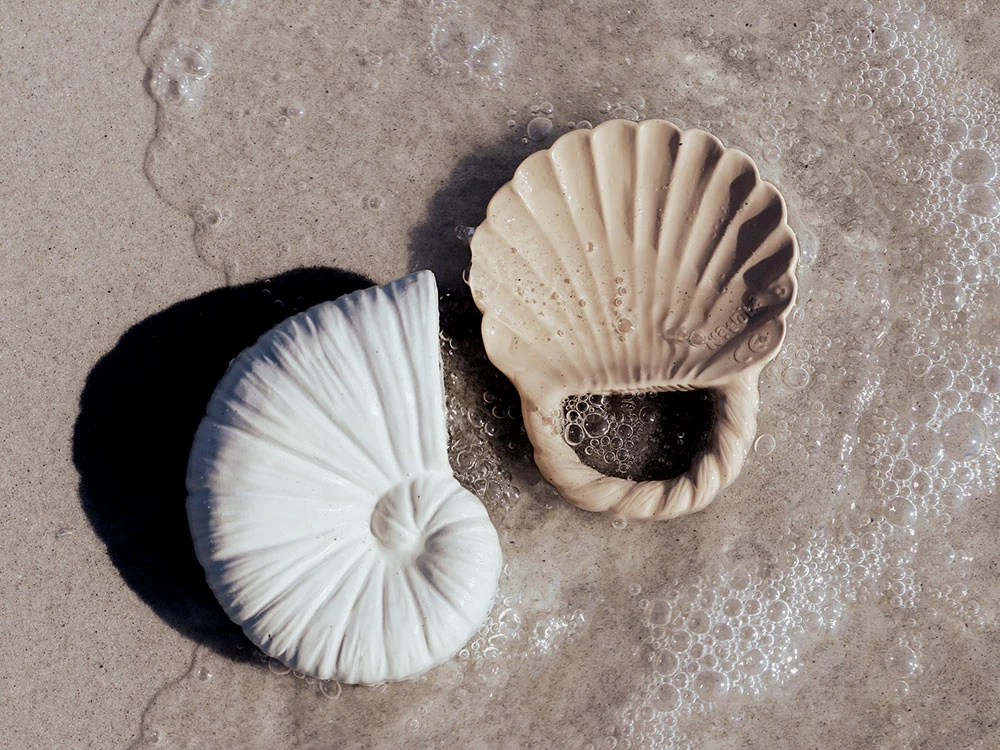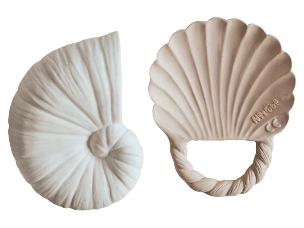 Hübsches Badeset zum Spielen, Erkunden und Planschen bestehend aus einem Beißring und einer offenen Muschel. Die Produkte bestehen aus naturbelassenem Kautschuk in den Farben Crèmeweiß und Beige. Sie sind lebensmittelecht und unbedenklich für dein Kind. Die Kautschukbeißringe von Natruba haben keine Löcher, somit kann kein Schimmel im Inneren auftreten. Die cremefarbene Muschel ist innen hohl.