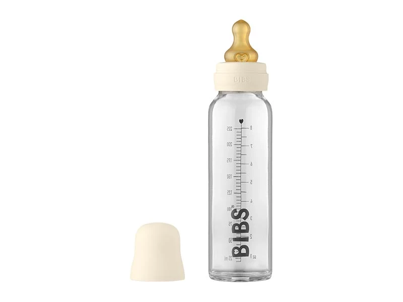 Diese hochwertige 225ml Babyflasche-Set von BIBS besteht aus Borosilikatglas, das extrem langlebig und hitzebeständig ist. Das Material aus 100% Glas stellt sicher, dass kein Mikroplastik in die Milch gelangt. Farbe – Ivory.