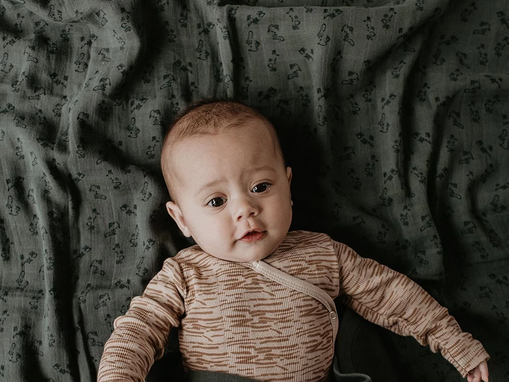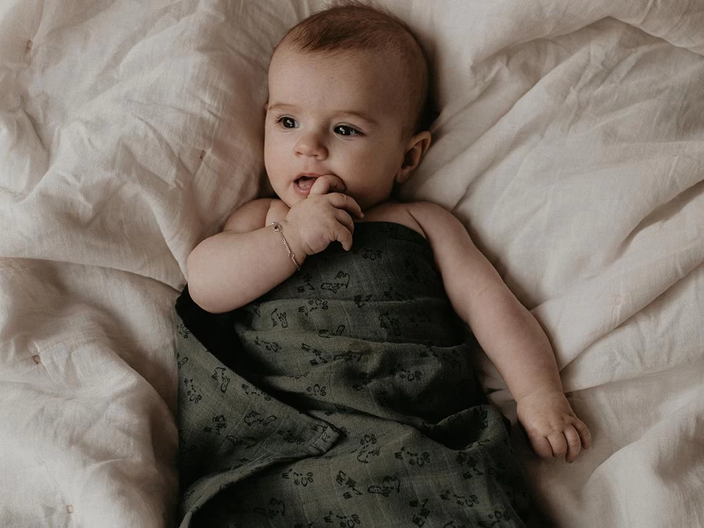 Tolles Spucktuch bzw Pucktuch in der Größe 120×120 cm mit süßem Hündchen-Aufdruck. Praktisches Musselintuch und eine wahre Bereicherung in deiner Babyausstattung. Farbe: Dunkelgrün.