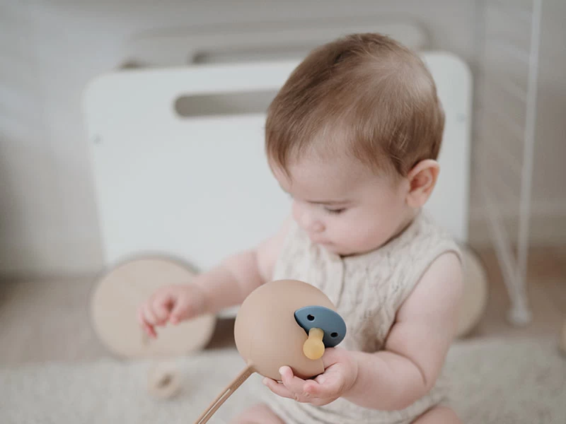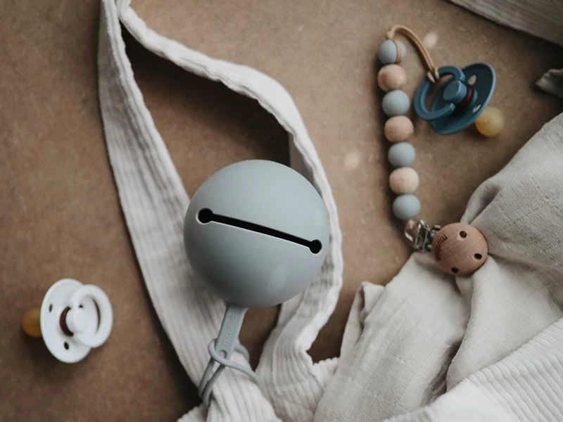 Dekorativer sehr ästhetischer Schnullerhalter designed in Sweden für die Verstauung von bis zu drei Schnullern. Dank des langen Loops kann der schöne Schnullerhalter z.B. an Kinderwagen, Wickeltaschen, Wickelrucksäcken usw. aufgehängt werden. Somit sind deine Schnuller immer erreichbar und sauber verstaut. Aus lebensmittelechtem Silikon und geschirrspülertauglich für einfache Reinigung.