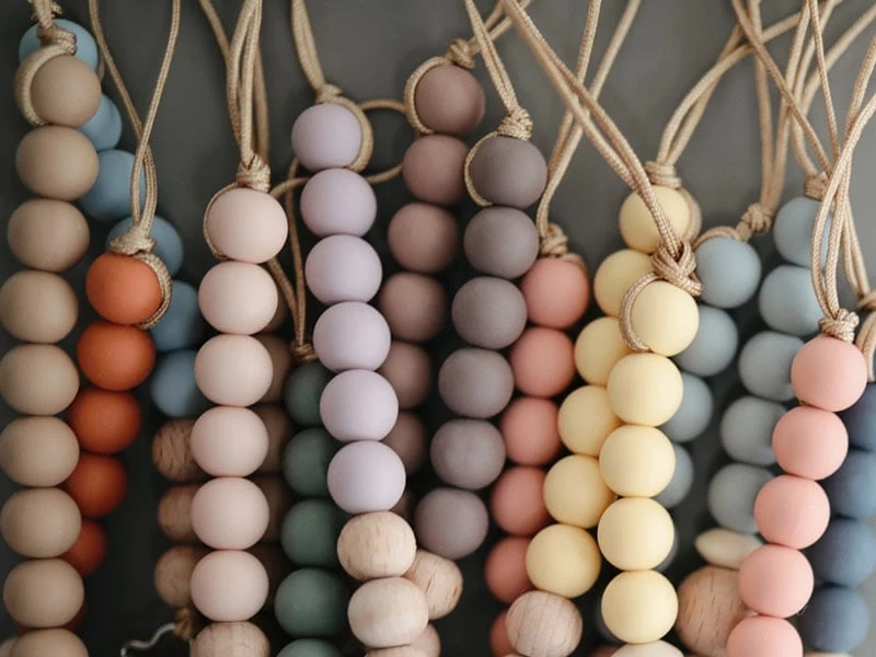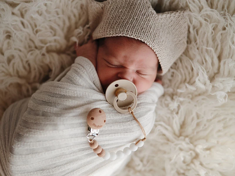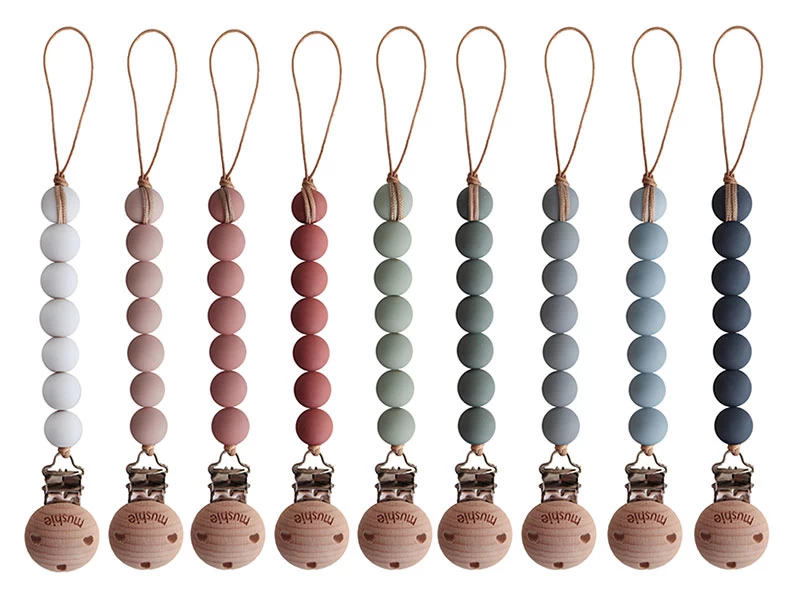 Der minimalistische Stil und die zarten Retrofarben machen diesen Schnullerhalter zu einem stilvollen Accessoire für dein Baby. Die farbigen Silikonkugeln sind 100% lebensmitteltauglich, geruchlos und komplett ohne Giftstoffe. Der Clip ist aus naturbelassenem Holz bzw. Silikon.