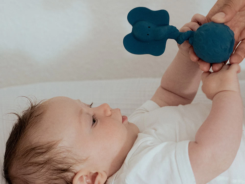Hochwertige und weiche Rassel Elefant aus Naturkautschuk in wunderschön kräftigem Tiefblau von der dänischen Marke Natruba. Die angenehme Rassel ist gleichzeitig ein Beißring mit Naturfarben bemalt, somit lebensmittelecht und unbedenklich für dein Kind. Eine tolle Geschenkidee zur Geburt. Die Kautschukbeißringe von Natruba haben keine Löcher, somit kann kein Schimmel im Inneren auftreten.