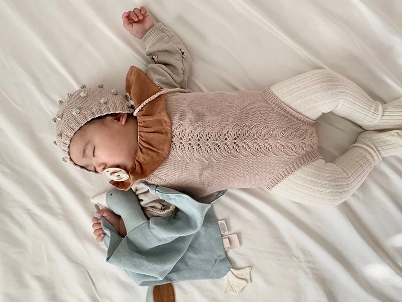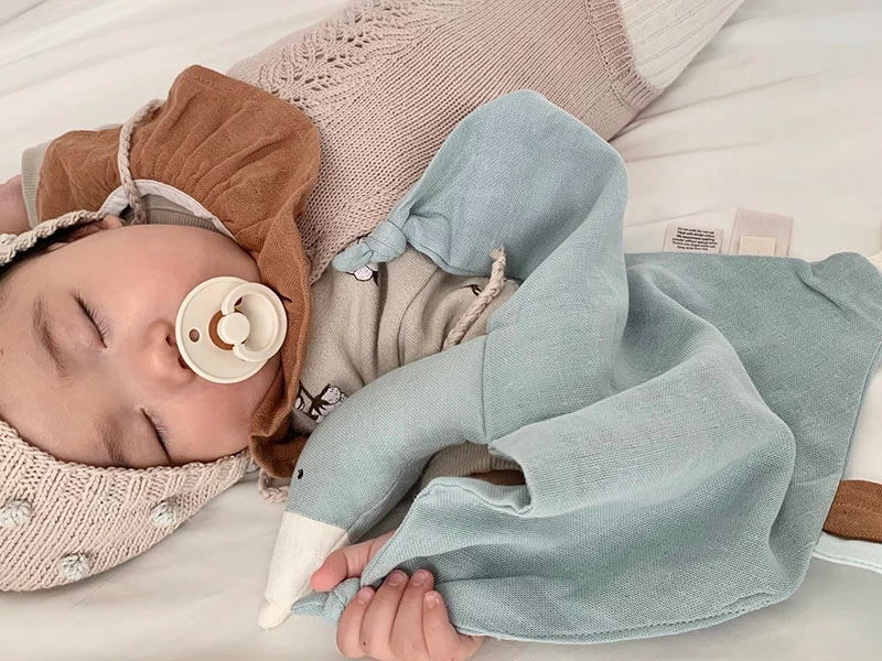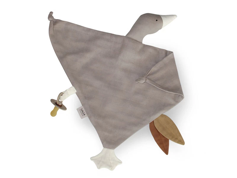 Ein wunderbares weiches Schnuffeltuch aus 100% Biobaumwolle (Musselinstoff) und recycleter Polyesterfüllung. Dieser knuffelige Freund hat auch eine Befestigung für den Schnuller deines Baby’s.