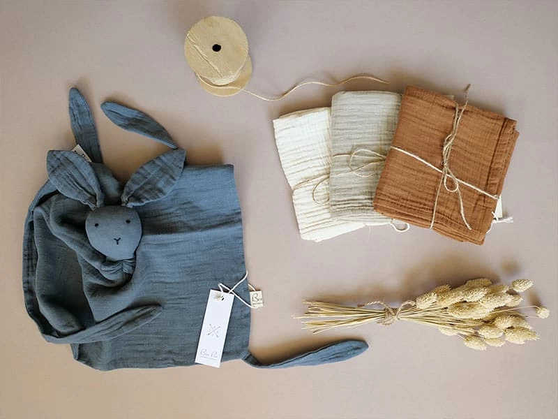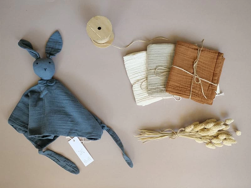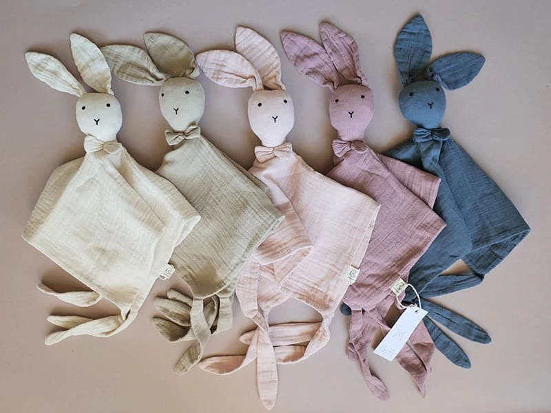 Diese Kollektion unserer weichen Kuschelhasen aus 100% Baumwollmusselin gibt dir die Gelegenheit, das perfekte Geburtsgeschenk für werdende Eltern bzw. für Babys zu finden. Diese weichen Schnuffeltücher mit Knoten an jedem Ende, einer kleinen Fliege und langen Öhrchen eignen sich ideal als allererster bester Freund und Langzeitschmusetuch vom ersten Lebenstag an.