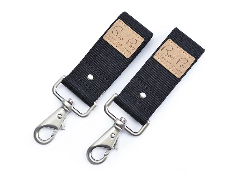 Mit einem Karabinerset für den Kinderwagen können Wickeltaschen an der Kinderwagenstange aufgehängt werden. Unsere Befestigung für die Wickeltasche am Kinderwagen ist sehr hochwertig verarbeitet und robust. Da du deine Boo Poo Wickeltasche auch anhand ihres Schultergurtes am Kinderwagen aufhängen kannst, sind Kinderwagenkarabiner ein tolles Extra, aber kein Muss!