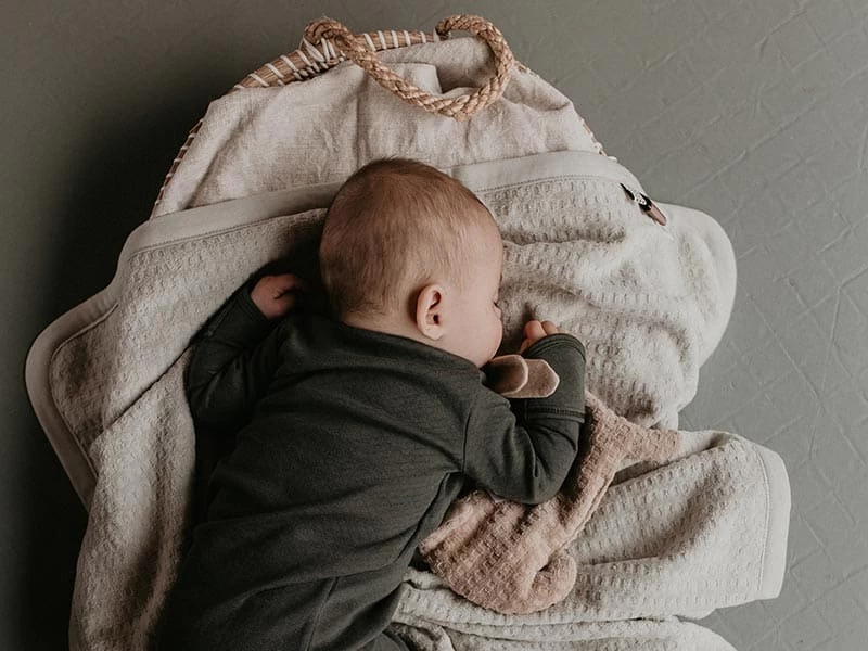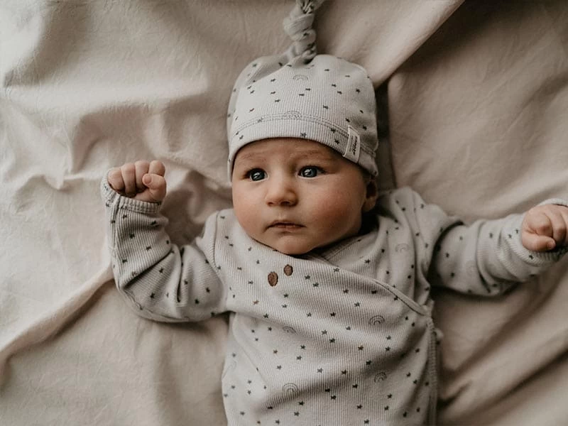 Musst du dein Baby Wickeln, geht dies ganz einfach durch Öffnen des unteren Knotens, somit öffnet sich der Schlafsack komplett. Ein wunderschönes Design und super praktisch für die ersten wertvollen Monate deines Babys.