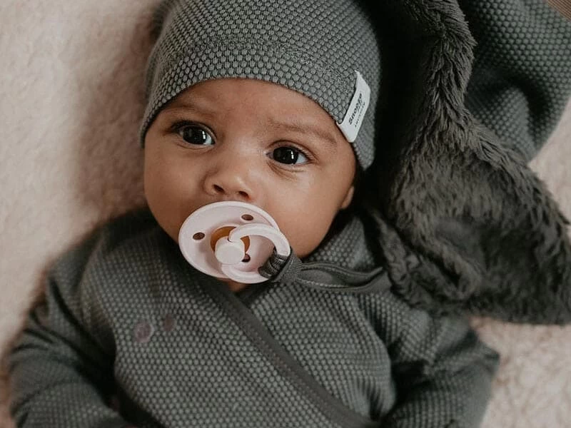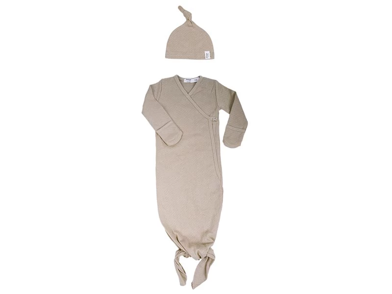 Weicher und leichter Babyschlafsack mit Babymütze aus elastischer Biobaumwolle mit hübschem Pointelle-Muster. Zuckersüß getragen in Kombination mit dem Mützchen. Ideal für Neugeborene zum Schlafen in Innenräumen. Farbe: Desert Sand.