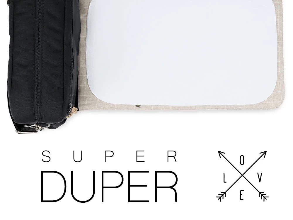 Mit der Boo Poo Wickeltasche erleben Eltern und Babys das einzigartige Wickelerlebnis. Da die Wickelunterlage im äußeren Design der Wickeltasche integriert ist, kann sie es sich leisten, weich und flauschig wattiert zu sein, ohne Platz im Inneren wegzunehmen.