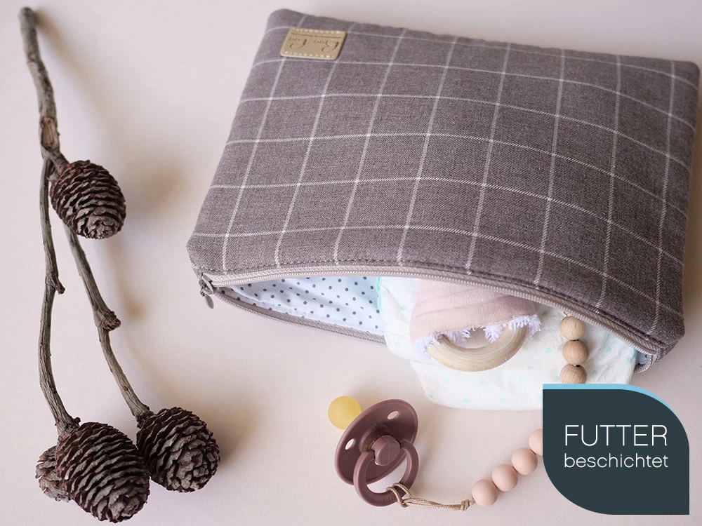Vielseitige Verwendung. Die minimalistischen Windelbeutel können auch als Nasstasche und Aufbewahrung für gebrauchte Windeln verwendet werden, denn der schöne Innenstoff ist beschichtet und lässt sich leicht abwaschen. Nach der Babyzeit machen sich die Täschchen wunderbar als Kulturbeutel für Kind und Mama oder als kleine Organizer in deiner Handtasche.