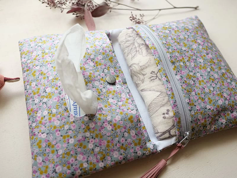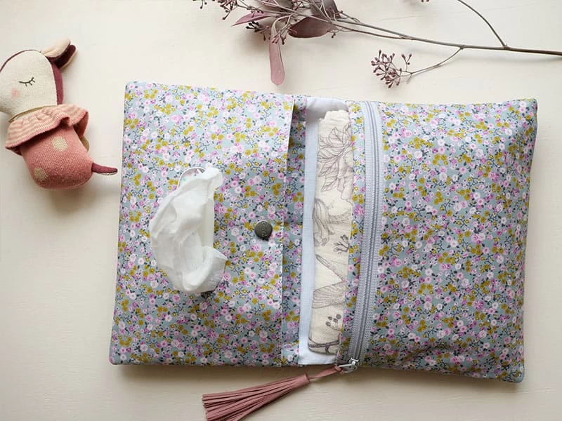 Entzückende Windeltasche mit Blumenmuster. Alle wichtigen Babywickelsachen können in diesem Windelorganizer verstaut werden. GOTS zertifizierter Baumwollstoff.