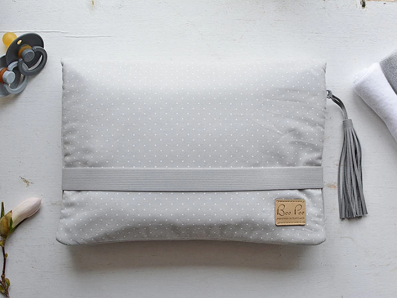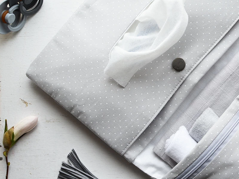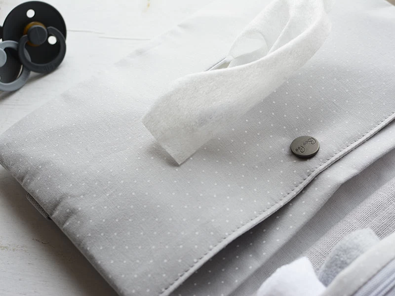 Die Organizer Windeltasche als kleine Wickeltasche – Diese handlichen Windelorganizer aus 100% Baumwolle mit 4 Innenfächern und einem breiten Elastikverschluss begleiten Familien mit Babys und Kleinkindern treu und platzsparend auf alle Ausflüge. Die Windeltasche lässt sich auseinanderfalten um innen die wichtigsten Dinge zum Wickeln aufzubewahren, wie Feuchttücher, Windeln, einen Body, Babycrèmes und ein Spucktuch. Das Extrafach für Feuchttücher hat eine praktische Aussparung für schnelleren Zugriff auf die Feuchttücher.