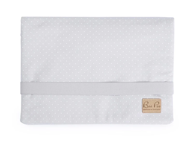 In der Reißverschlusstasche kannst du Wertsachen sicher aufbewahren. Im praktischen Feuchttücherfach mit Boo Poo Druckknopf-Verschluss verstaust du die Feuchttücher sicher und kannst die einzelnen Tücher dank der Aussparung jederzeit herausziehen. Der Windelorganizer wird zusammengefaltet und mit einem dicken elastischen Band bequem geschlossen.